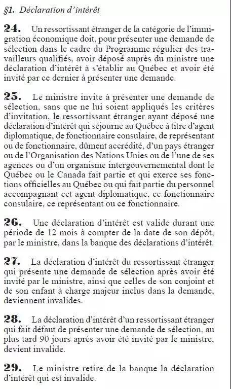 首先,必须向移民部提交一份意向声明来表明将会在魁省定居,所有提交意向声明的申请人将会统一放入“池子”中,等待被邀请;然后被邀请的申请人必须在90天之内向移民部提出有效的CSQ申请;意向声明的有效期是12个月,也就是说如果申请人递交意向声明后12个月内没有受到邀请,他将从“池子”中被剔除。